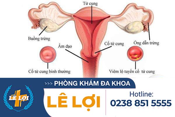 – Lộ tuyến: là sự phình giãn quá mức của các tế bào tuyến ở tử cung do phải chịu áp lực hoặc tổn thương trong thời gian lâu dài, các tuyến này phình giãn và lộ ra ngoài cổ tử cung, tăng cường tiết dịch khiến âm đạo mất cân bằng pH nên mầm bệnh dễ dàng xâm nhập và gây viêm.