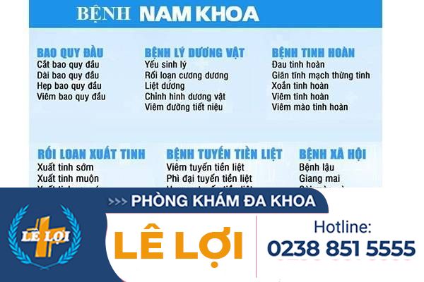 Hiện chuyên khoa Nam Khoa Phòng khám đa khoa Lê Lợi đang tư vấn, khám, điều trị rất nhiều bệnh lý sau: