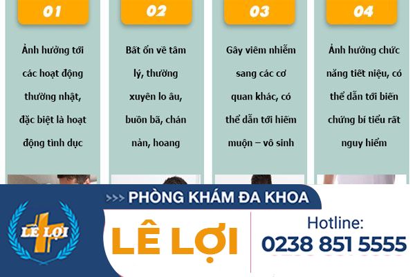 Đời sống tình dục của nam giới và bạn đời bị ảnh hưởng do nam giới bị đau khi quan hệ, xuất tinh, giảm khoái cảm, thậm chí là sợ quan hệ.